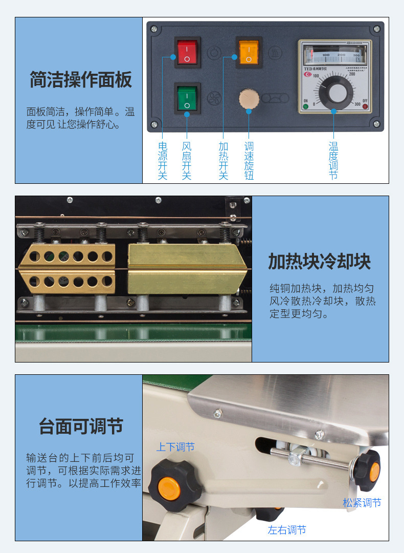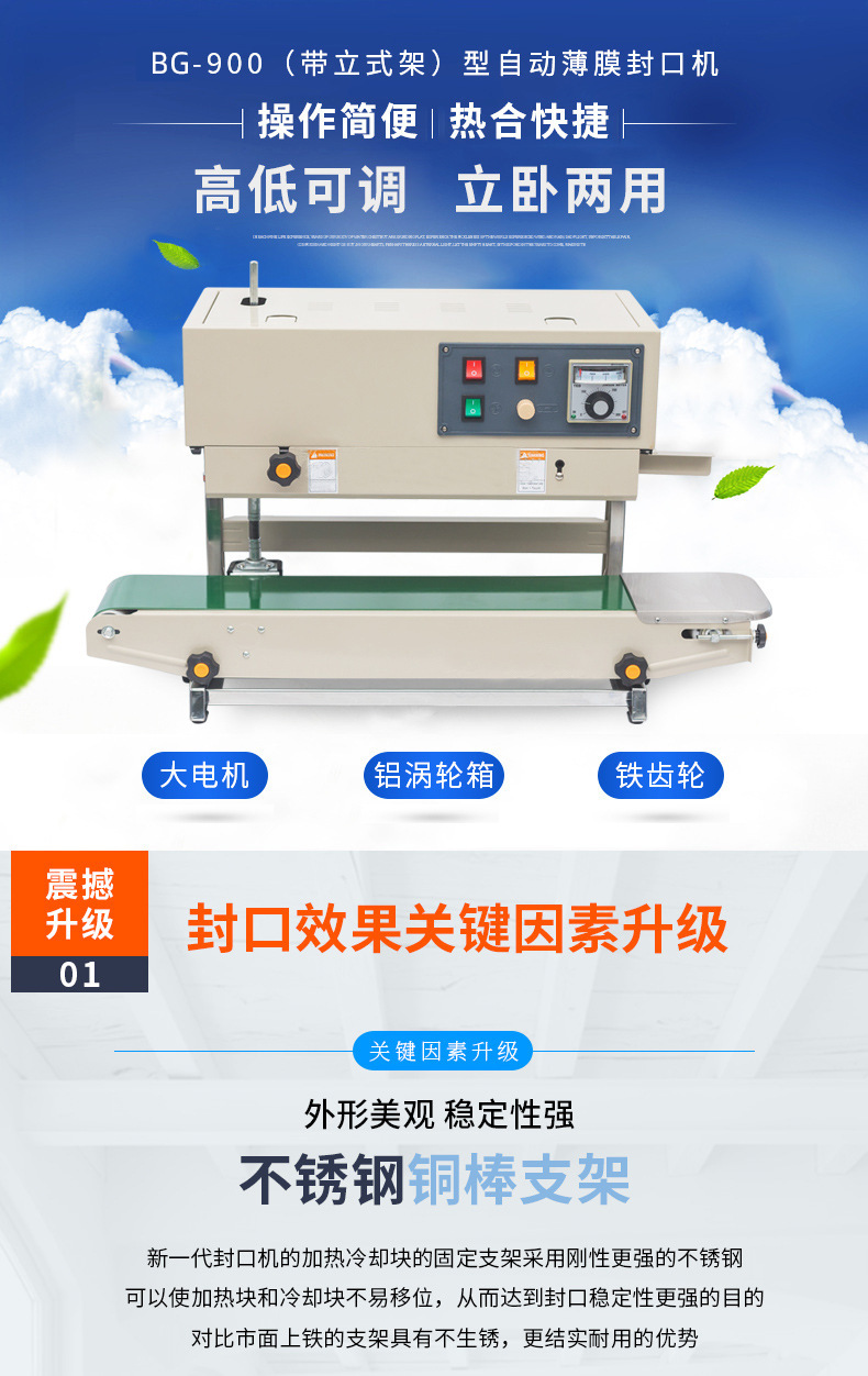 立式封口機可用于各種尺寸的包裝袋,尤其是大型包裝袋的封口作業,如大米、面粉、狗糧等大包裝產品,也適用于液體、粉末、重物等不同類型物料的包裝封口