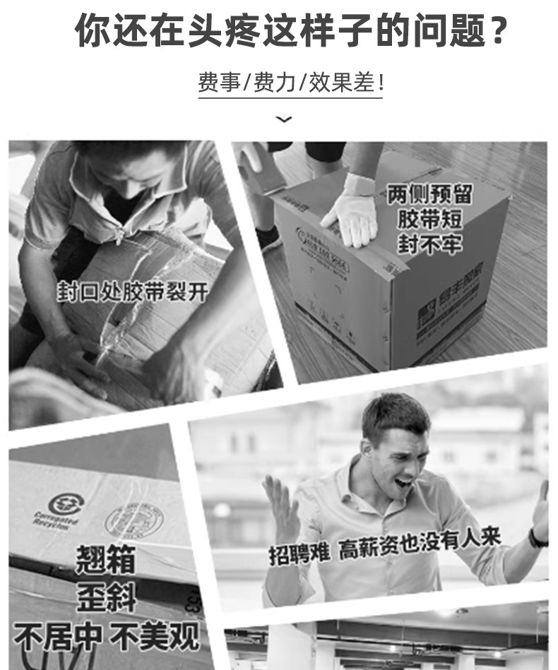 - 封箱效果好:采用優(yōu)質的膠帶和先進的封箱技術,確保封箱牢固、美觀,不易開裂。