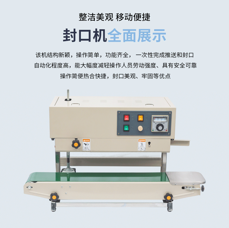 - 高效連續封口:能夠以較高的速度連續對物品進行封口,大大提高了生產效率。適合大規模生產和流水線作業。