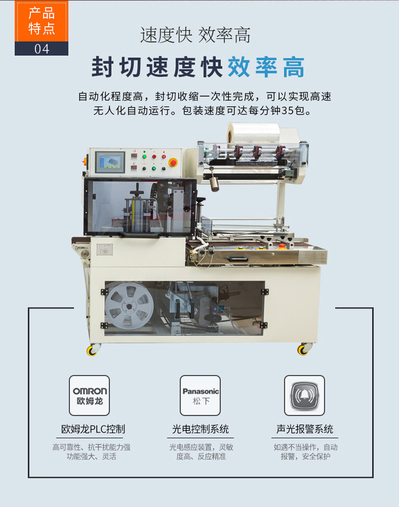 送料系統將待包裝物品平穩地輸送至封切位置。封切系統通過加熱元件對包裝薄膜進行加熱,使薄膜軟化并貼合在物品周圍,同時進行封邊操作,將物品密封在薄膜內。控制系統精確控制各個環節的動作,確保設備的穩定運行和包裝質量。