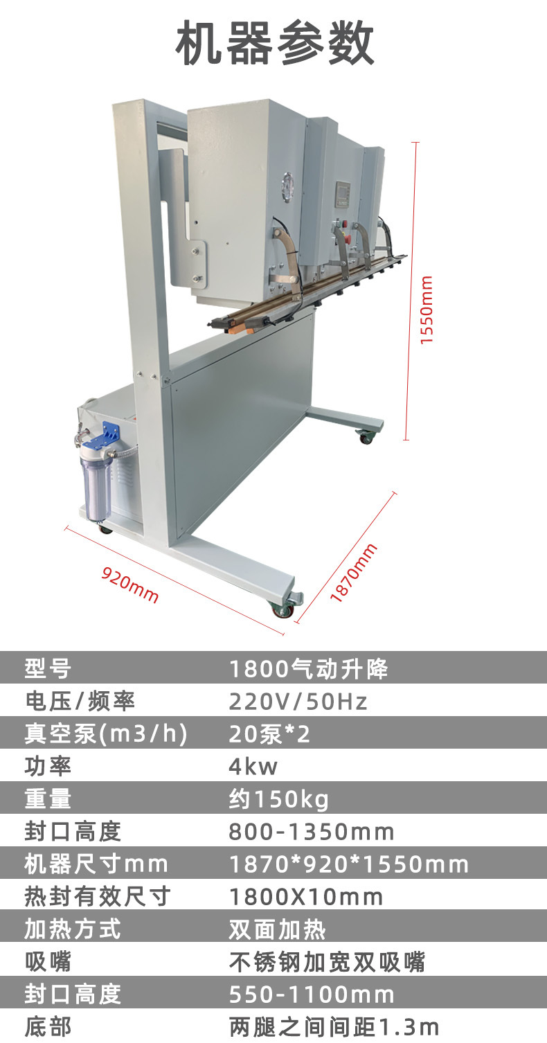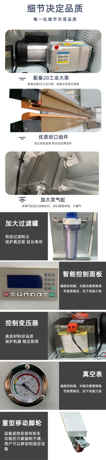 - 封口系統:包括封口條和加熱裝置。封口條一般是由耐高溫的材料制成,加熱裝置能夠快速升溫,使包裝袋在真空狀態下封口。封口系統的溫度和時間可以根據包裝袋的材質和厚度進行調節,以保證封口的質量,防止漏氣。