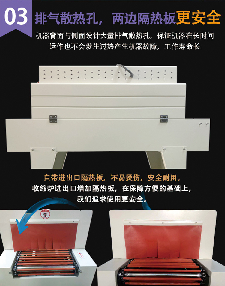 - 全封閉式熱收縮包裝機:這種機器可以將產品完全包裹在熱收縮薄膜內,形成一個封閉的包裝。適用于對防潮、防塵要求較高的產品,如電子產品、精密儀器等。