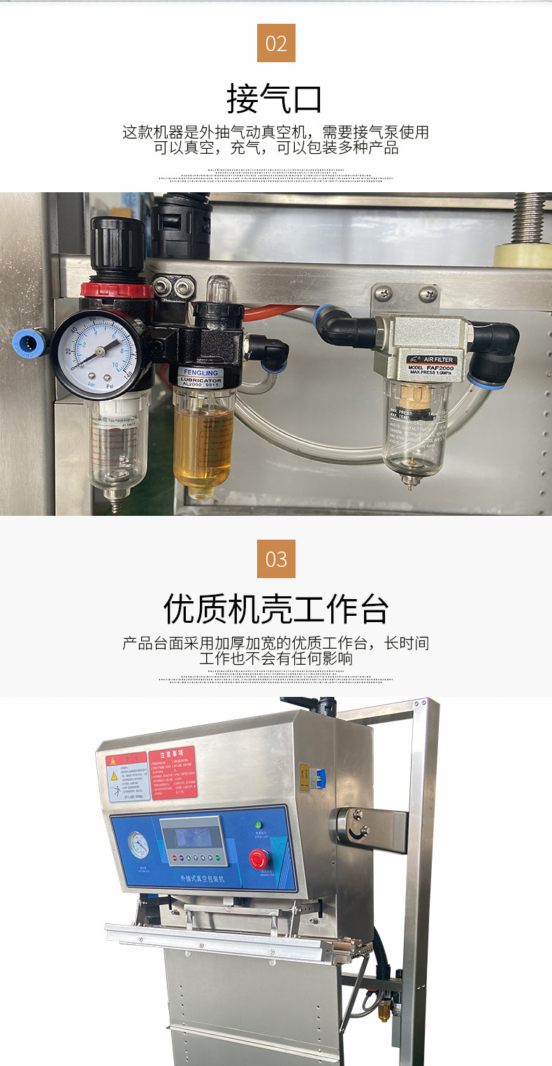 立式外抽真空包裝機除了在食品肉類的應用,還可以用于化工產品、紡織品、五金制品等的包裝,滿足不同行業的包裝需求