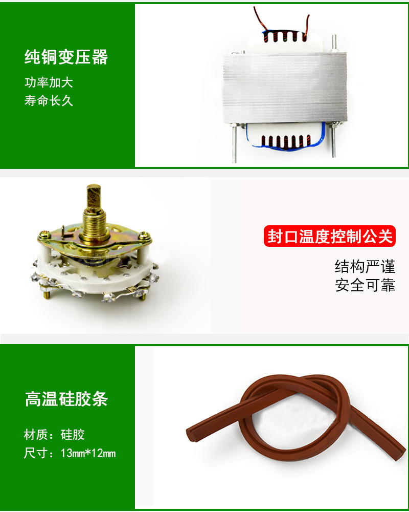 - 傳動機構:這個可就復雜一些啦,它的作用是將腳踏板的踩踏動作轉化為封口機內部的一系列動作,比如接通電路、帶動封口座擠壓等。常見的傳動機構有連桿機構、齒輪機構或者兩者結合的形式。比如說通過連桿將腳踏板的上下運動轉化為水平方向的推動動作,從而推動相關部件完成電路接通和封口座擠壓等操作。