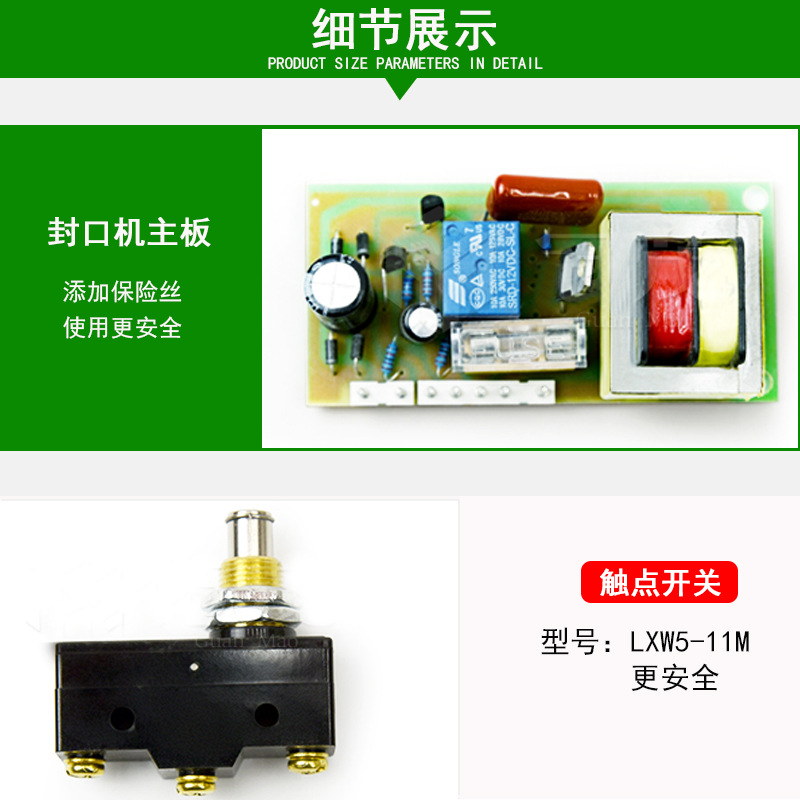 - 外殼:外殼的主要作用就是保護里面的各個部件啦,它一般是用金屬材質制作的,比如鋼板等。金屬外殼不僅有較好的強度,可以防止外界的碰撞對里面部件造成損壞,而且還具有一定的散熱性能,因為在封口機工作過程中,加熱條等部件會產生熱量,外殼可以幫助散發一部分熱量。