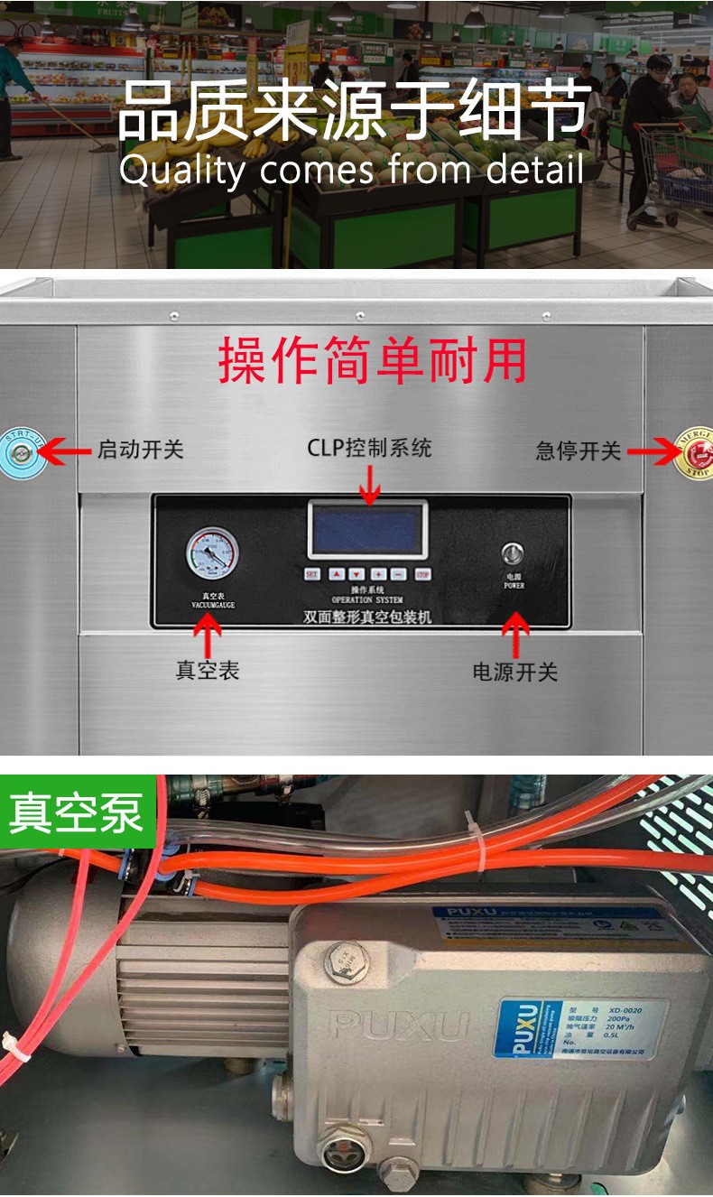 - 不僅可以進行真空包裝和整形,還可以根據不同的產品需求,靈活調整包裝參數。例如,可以設置不同的抽真空程度、封口寬度和溫度,以及整形的強度和模式等,以滿足多樣化的包裝要求。