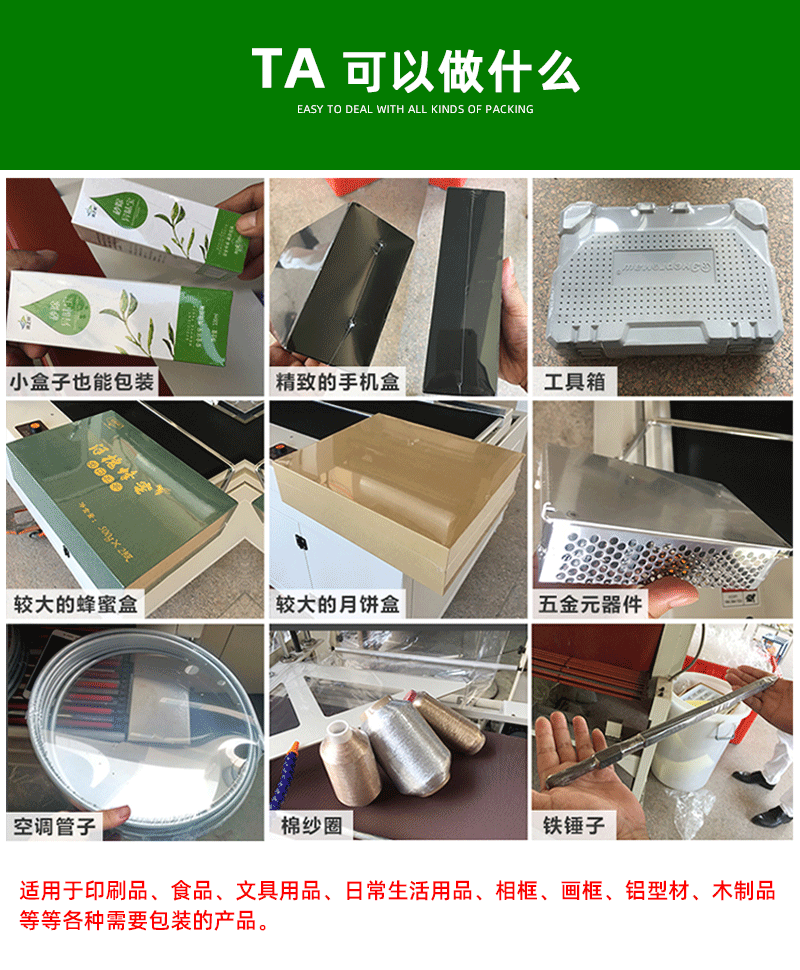 - 無論是方形的日用品、圓形的食品,還是異形的電子產品,都可以在這臺機器上進行有效的封切包裝。