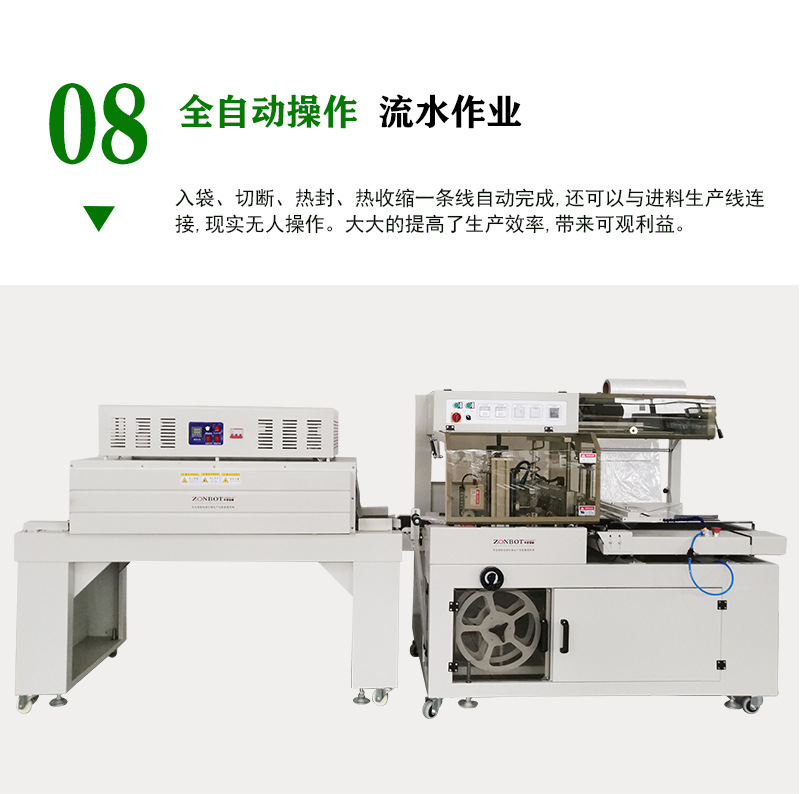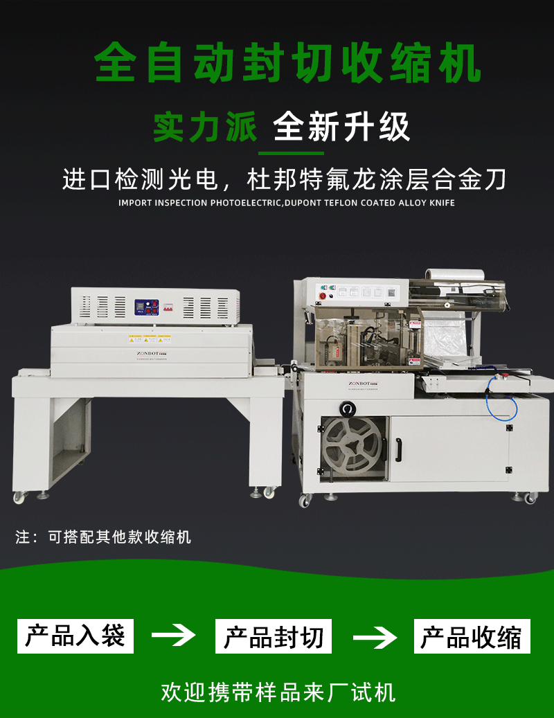 - 全自動封切機可以適應多種包裝材料和產品類型。它可以使用塑料薄膜、POF 熱收縮膜等常見的包裝材料,并且能夠對不同形狀、大小的產品進行包裝。