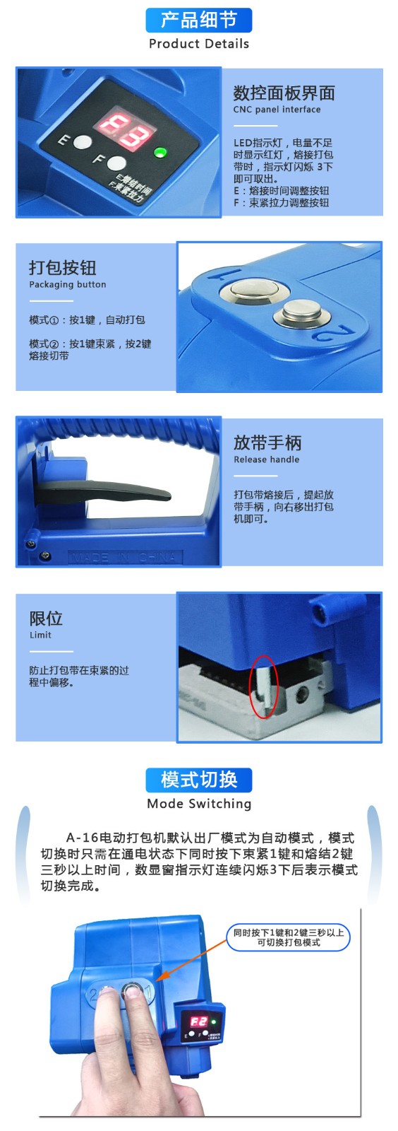 • 電池保養:對于使用電池供電的手提電動打包機,要注意正確充電和使用方法,避免過度充電或過度放電,以延長電池使用壽命 。