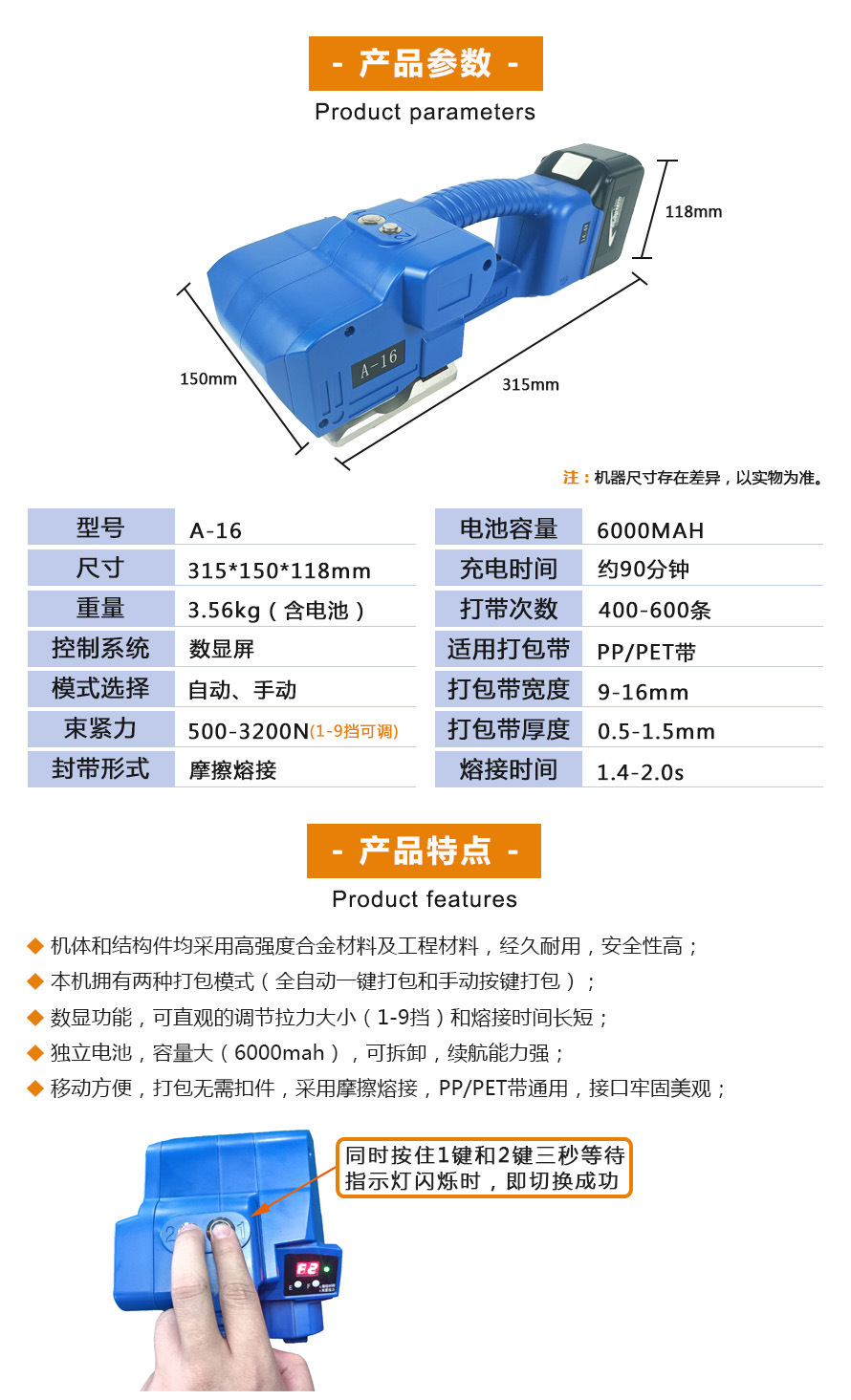 • 適用打包帶規格:包括帶寬和帶厚,常見的帶寬范圍在 12mm 至 19mm 之間,帶厚在 0.4mm 至 1.0mm 之間 2