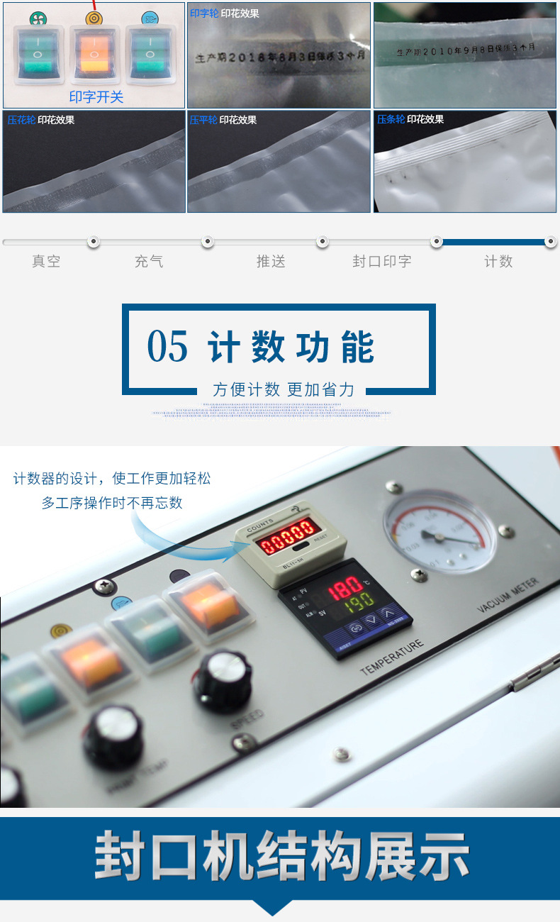 - 自動封口裝置:采用先進的熱封技術,封口裝置能夠快速、準確地對抽真空后的包裝袋進行封口,保證封口的牢固性和密封性。封口溫度、壓力和時間等參數可精確調節,以適應不同材質和厚度的包裝材料 。