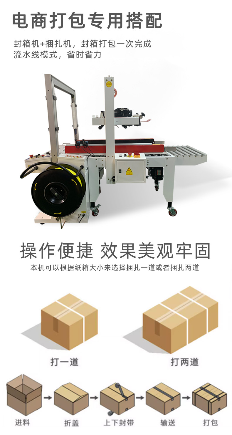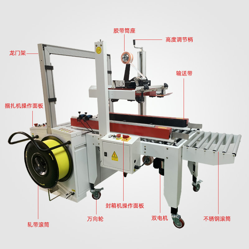 封箱打包一體機(jī)集封箱和打包功能于一體,一次性完成兩個(gè)工序,大大節(jié)省了時(shí)間和人力成本