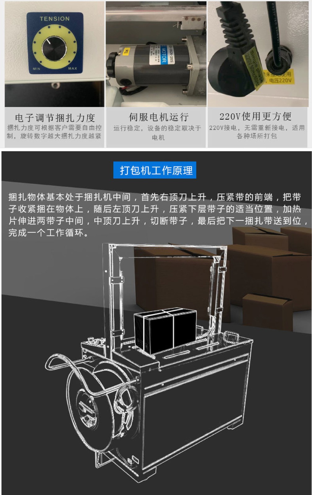 - 家電產(chǎn)品在生產(chǎn)完成后,無論是大型家電如冰箱、洗衣機,還是小型家電如電水壺、電吹風等,都需要進行包裝和捆扎。自動捆扎機可以根據(jù)家電產(chǎn)品的大小和重量,選擇合適的打包帶(如塑料帶或聚酯帶)對產(chǎn)品的包裝箱進行捆扎。對于大型家電,捆扎機可以確保包裝箱在搬運和運輸過程中不會散開,保護產(chǎn)品不受損壞。