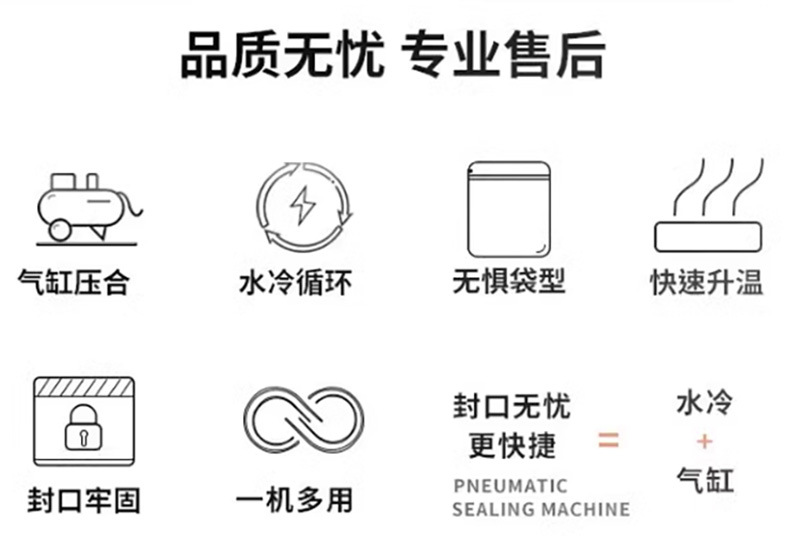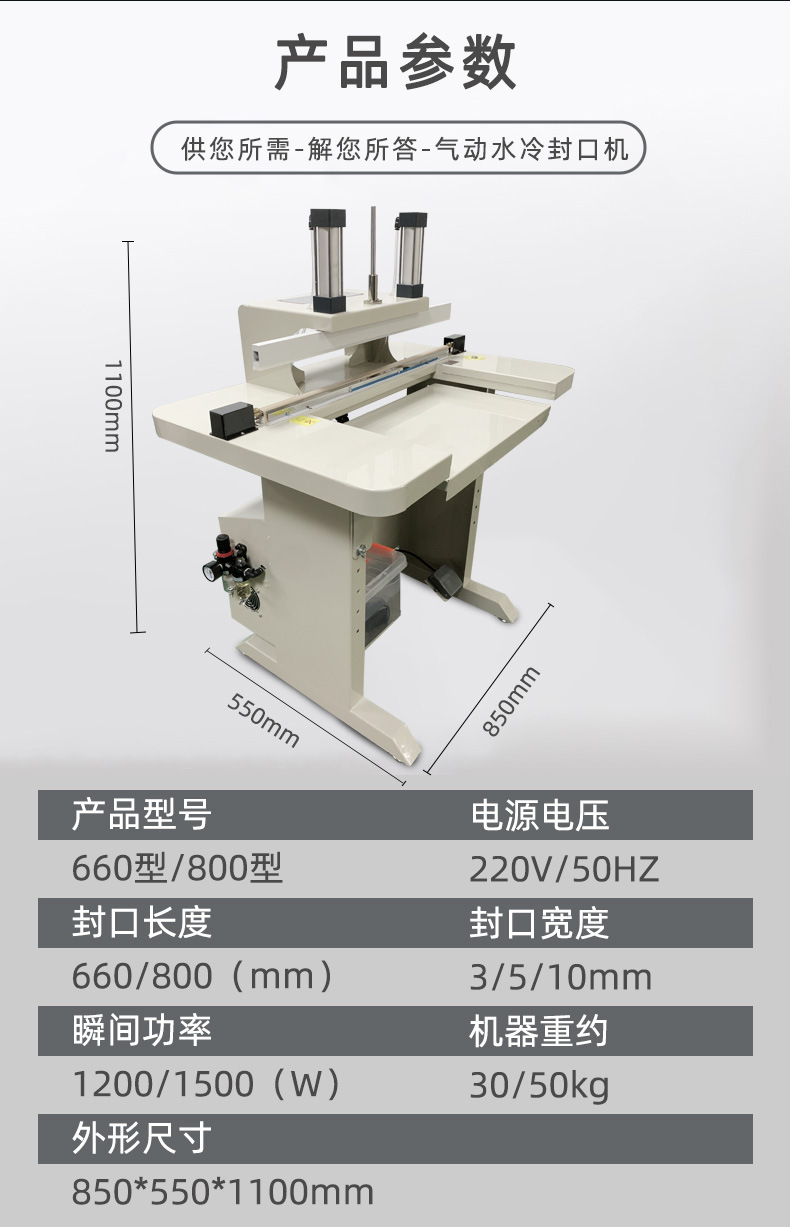 - 封口質(zhì)量好:水冷技術(shù)可快速帶走熱量,使封口部位迅速冷卻固化,封口更牢固、平整,密封性好,能有效防止包裝內(nèi)容物泄漏、變質(zhì)。
