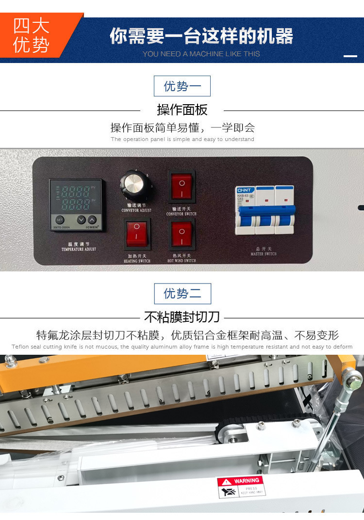 - 節能環保:一些先進的全自動封切熱收縮機采用特殊的保溫結構和熱風導流循環系統,既能起到降耗節能的效果,又能確保工人操作的安全性