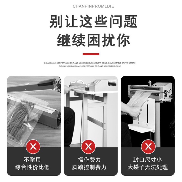 - 封口尺寸:封口的長度和寬度越大,每次封口所需的時間就越長,從而影響工作效率。例如,對大尺寸的包裝袋進行封口,封口機的壓頭需要覆蓋更大的面積,加熱和施壓的時間會相應增加。