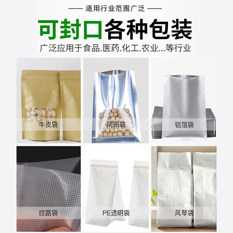- 包裝材料:不同材質、厚度的包裝材料對封口效率有一定影響。一般來說,材質較薄、熱封性能好的塑料薄膜,如普通 PE 薄膜,封口速度相對較快,因為其所需的加熱時間較短,冷卻速度也快,能較快進入下一次封口流程。而對于厚度較大或材質較特殊的包裝材料,如多層復合薄膜或帶有鋁箔層的薄膜,可能需要更高的溫度和更長的封口時間,會在一定程度上降低封口效率。
