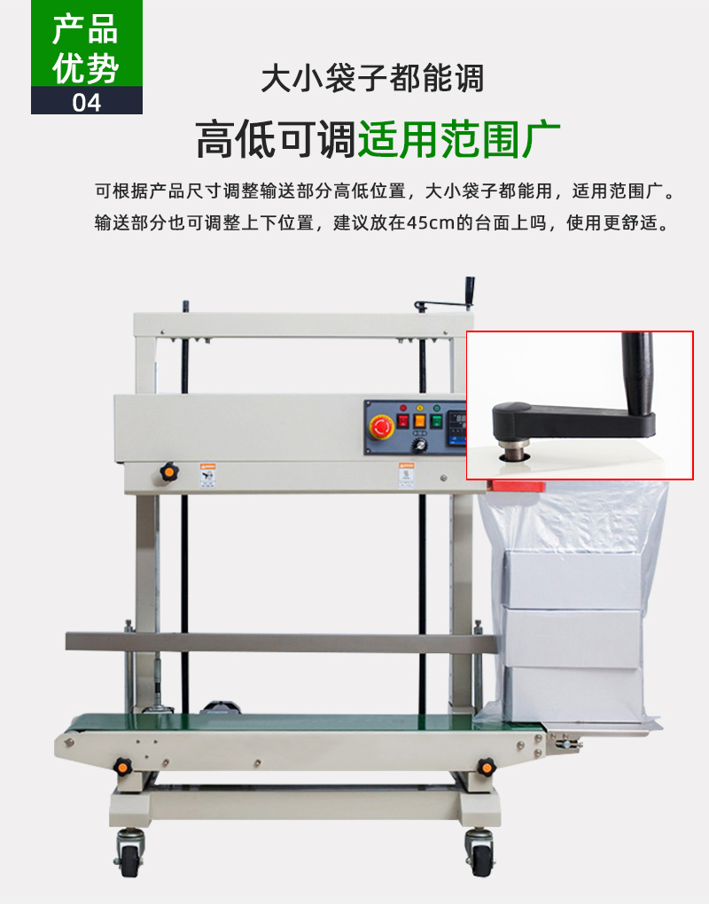 立式封口機的封口效果受多種因素影響,以下是一些主要方面: