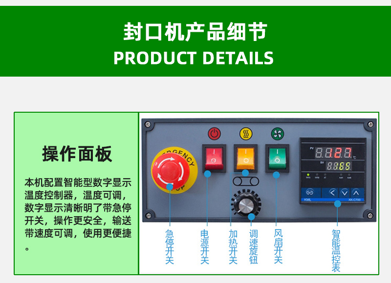 - 加熱元件的性能直接影響溫度的均勻性和穩定性。如果加熱元件老化或損壞,可能導致封口處溫度不均勻,出現局部封口不牢或過熱現象。