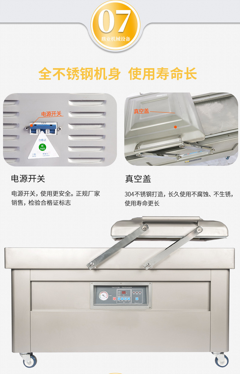 雙室平板真空包裝機(jī)一般采用 304 不銹鋼材質(zhì),具有良好的耐腐蝕性和強(qiáng)度