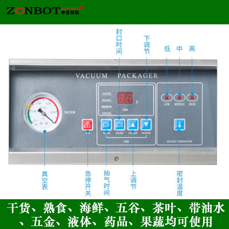 - 準(zhǔn)備工作:接通電源,打開機(jī)器開關(guān),檢查設(shè)備是否正常運(yùn)行;根據(jù)包裝要求,調(diào)整好抽真空時(shí)間、熱封時(shí)間、熱封溫度等參數(shù);準(zhǔn)備好待包裝的產(chǎn)品和包裝袋。