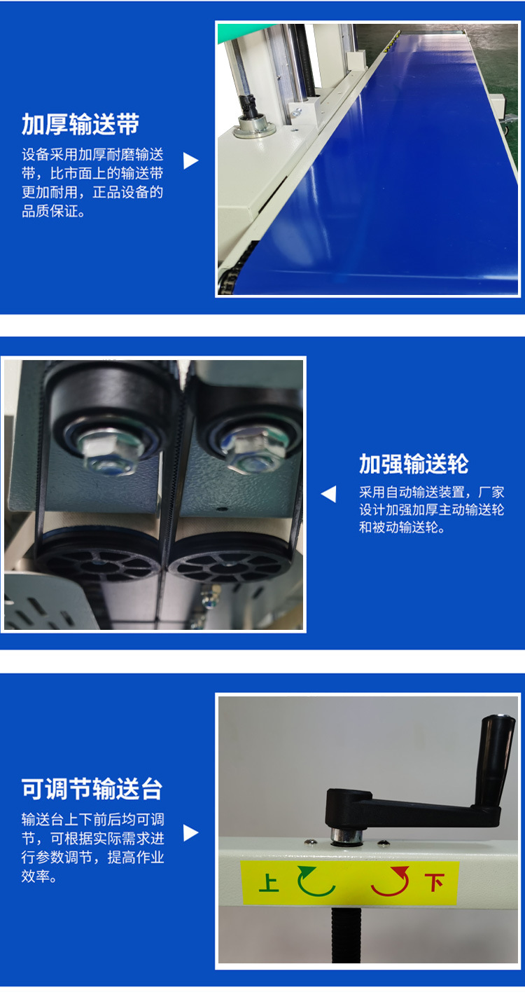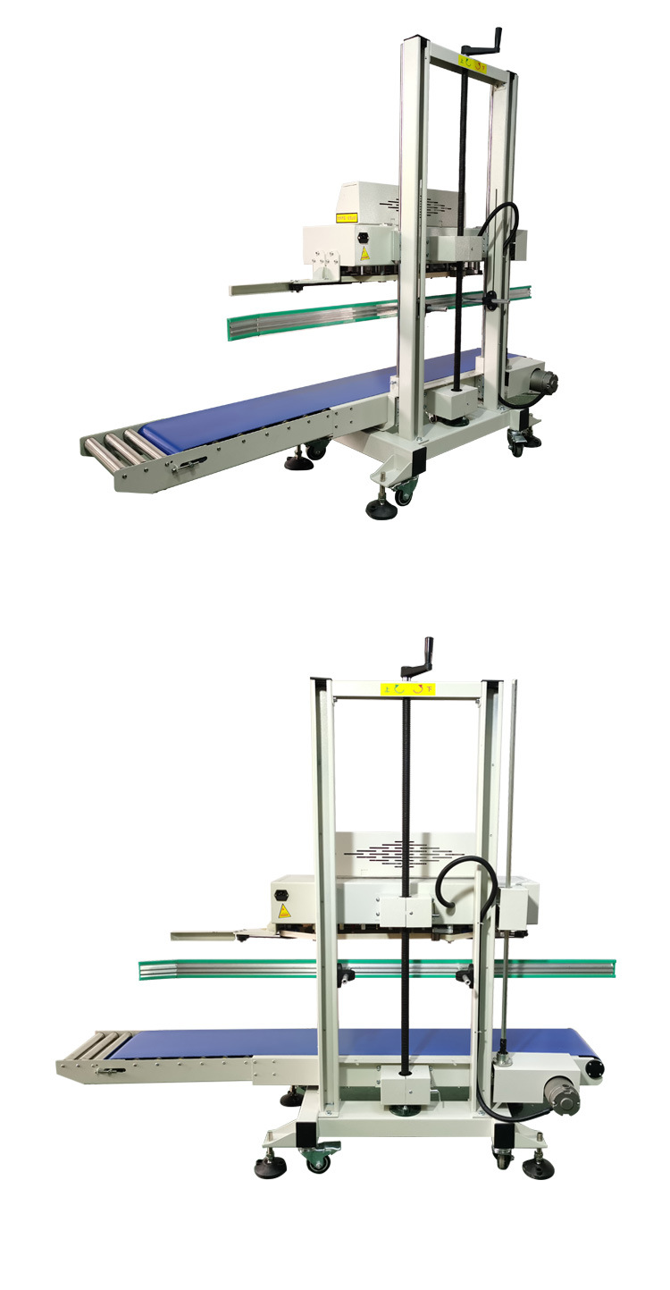 立式連續式封口機由輸送帶、導向橡膠帶等組成,用于輸送待封口的包裝袋,保證其準確地通過各個工作區域
