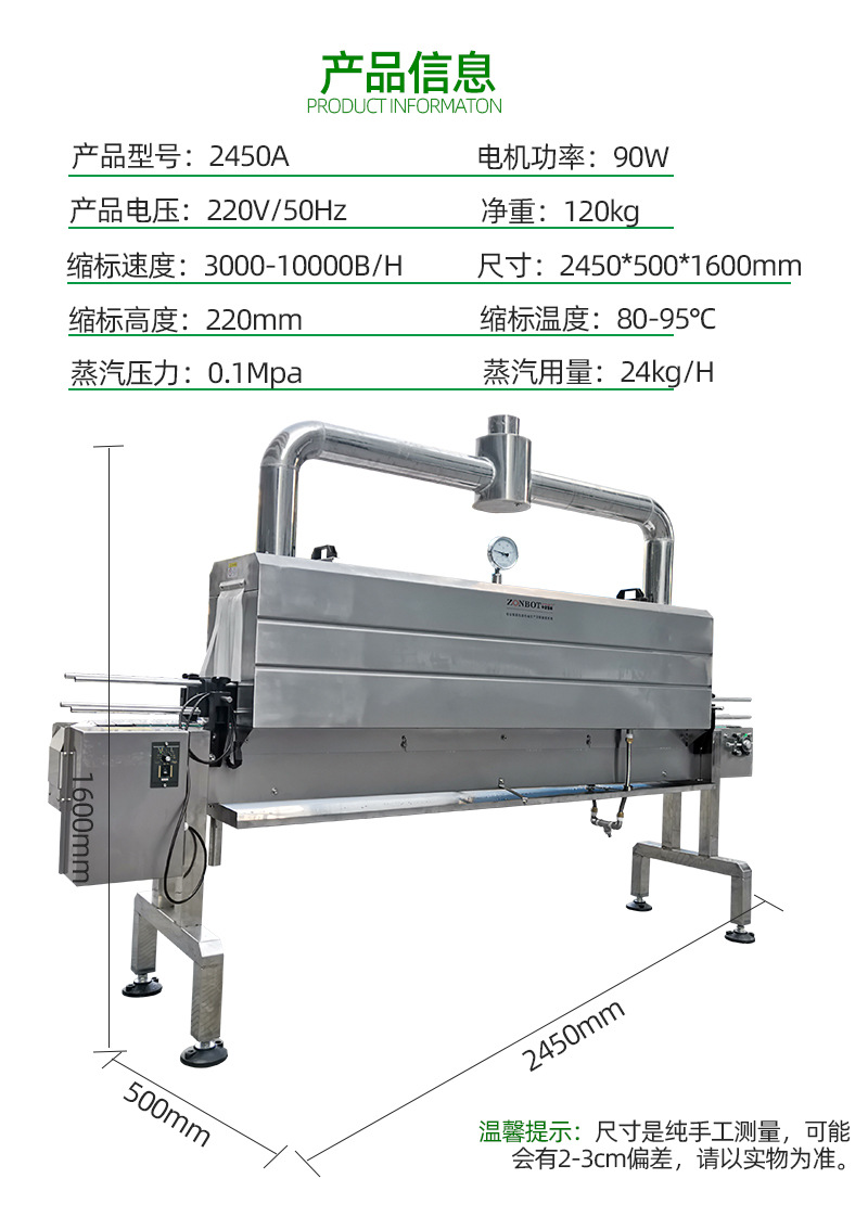 2. 高效節能:蒸汽作為熱源,熱傳導效率高,能夠快速達到收縮溫度,節省能源消耗。
