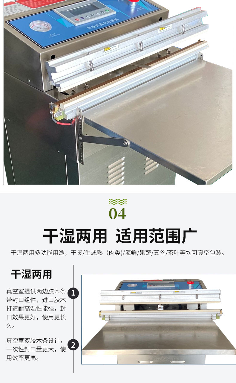 總之,氣動外抽真空包裝機以其高效、精準、安全的特點,在眾多行業中發揮著重要的作用