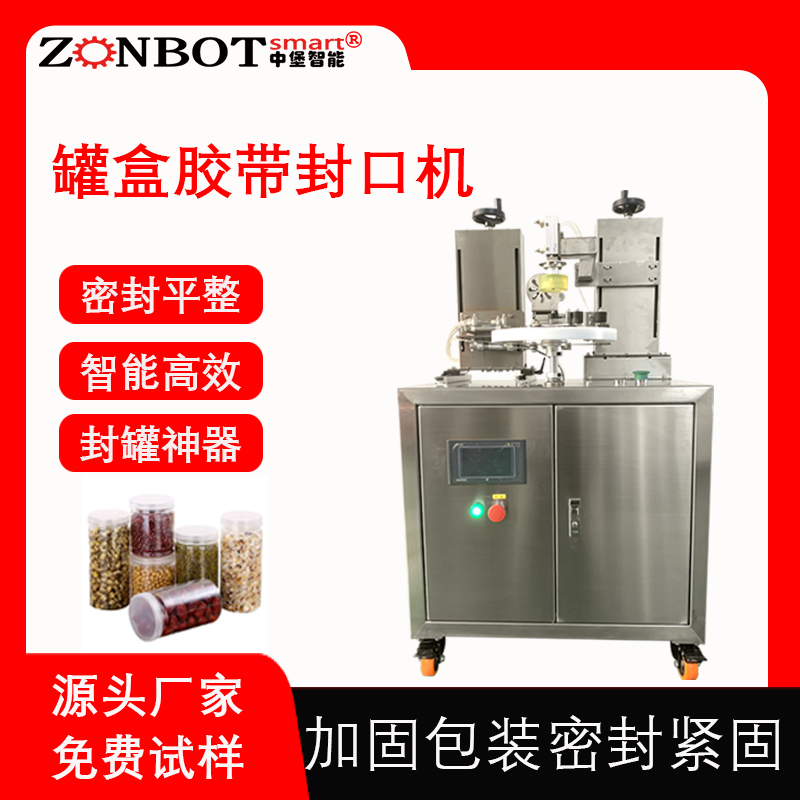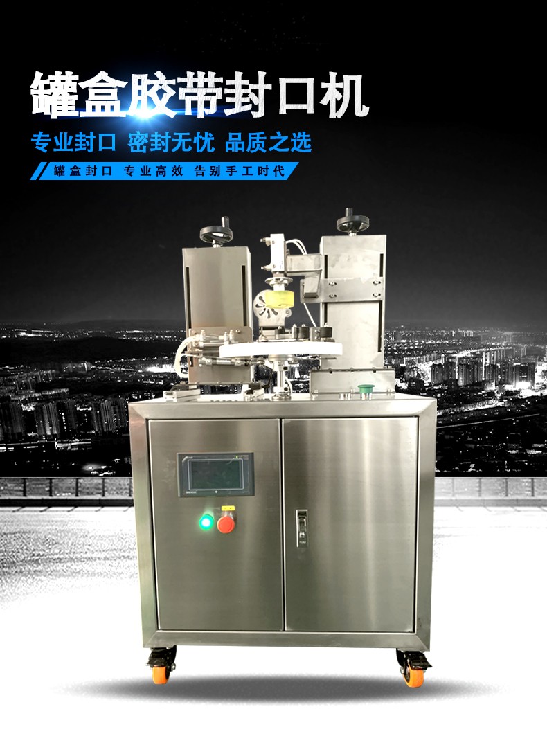 罐盒膠帶封口機是一種專門用于對罐盒等容器進行封口的設備,主要是通過膠帶粘貼的方式來密封容器開口。其工作原理是將膠帶從膠帶卷上引出,然后利用機械裝置將膠帶平整地貼合在罐盒的開口邊緣,經(jīng)過滾壓等方式使膠帶牢固地粘在罐盒上,從而實現(xiàn)封口。 結構組成 膠帶供給系統(tǒng):包括膠帶卷放置軸、膠帶張力控制裝置和膠帶引導部件。膠帶卷放置軸用于安裝膠帶卷,其設計要能適應不同尺寸的膠帶卷。膠帶張力控制裝置可以確保膠帶在輸送過程中保持適當?shù)膹埩Γ苊饽z帶過松或過緊。膠帶引導部件則負責將膠帶從膠帶卷準確地引導到封口位置。 封口執(zhí)行機