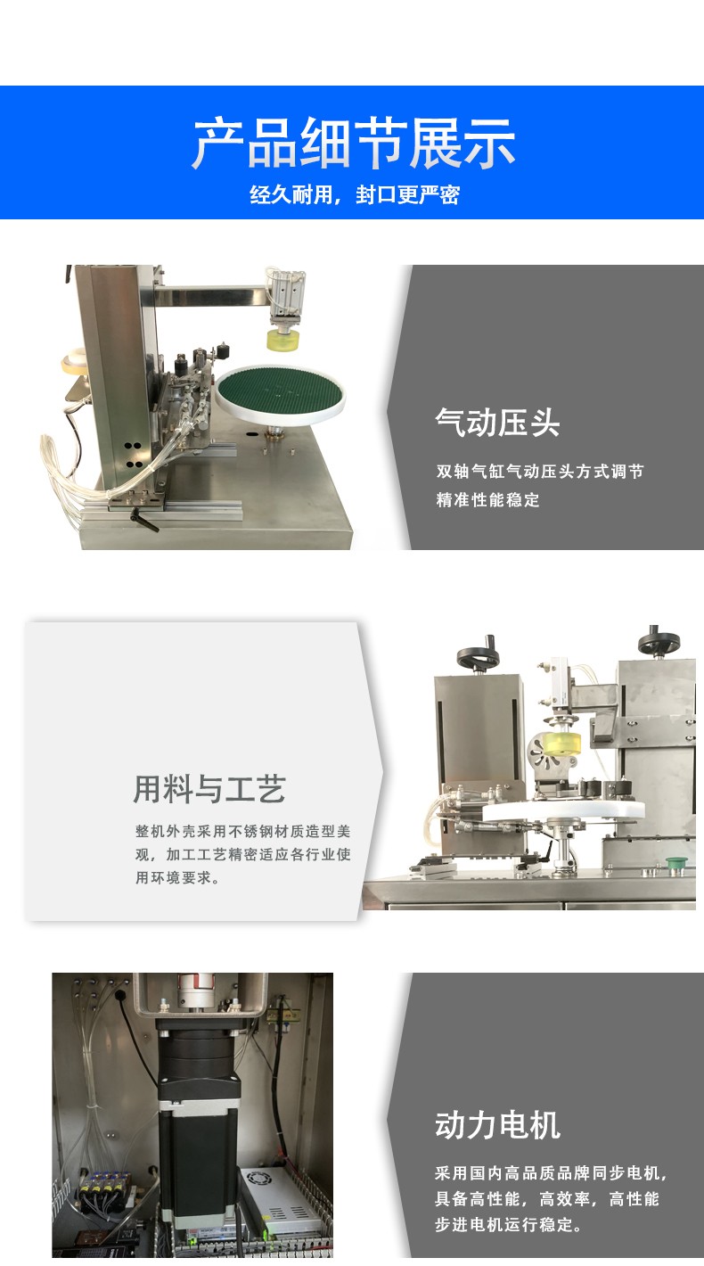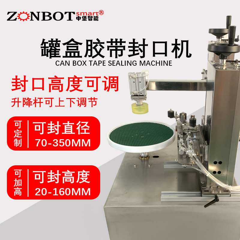 • 膠帶貼合:接著,壓帶輪開始動作,將膠帶平整地貼合在罐盒的開口邊緣。壓帶輪的壓力是可以調(diào)節(jié)的,操作人員可以根據(jù)罐盒的材質(zhì)(如金屬罐、塑料罐)和膠帶的類型(如普通膠帶、防偽膠帶)來調(diào)整合適的壓力,以確保膠帶能夠緊密地貼合在罐盒上,而不會出現(xiàn)褶皺或縫隙。