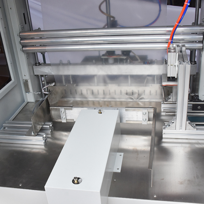 • 袖口式包裝操作:當產品進入包裝筒后,袖口折疊裝置開始工作。這個裝置一般是由多個機械臂或者折疊板組成,它們按照預設的程序和軌跡運動,將包裝筒的兩端(或者一端,根據具體包裝需求)巧妙地折疊成袖口狀。這種袖口式的包裝結構不僅美觀,而且能夠增強包裝的密封性和牢固性。