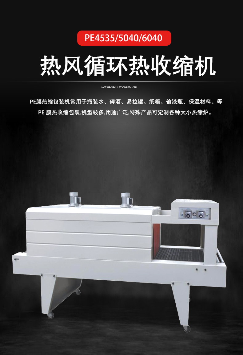 PE 噴氣式熱收縮機是專門用于對聚乙二醇(PE)熱收縮薄膜進行收縮包裝的設備。其工作原理是基于熱空氣噴射,通過內部的加熱系統將空氣加熱到特定溫度,然后利用噴氣裝置把熱空氣均勻地噴射到包裹產品的 PE 薄膜上。PE 薄膜在熱空氣的作用下,分子鏈開始運動,從而產生收縮現象,最終緊密地貼合在產品的表面,達到良好的包裝效果。例如,就像給一個產品穿上了一層量身定制的 PE “緊身衣”,使產品得到保護并且外觀更加規整。 結構特點 加熱系統 針對 PE 薄膜的特性,加熱系統能夠精準控制溫度。PE 薄膜一般需要在較高的溫