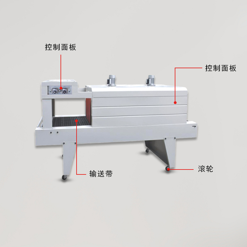 • 主要包括輸送帶和驅動電機。輸送帶用于承載并輸送被 PE 薄膜包裹的產品通過加熱區域。驅動電機控制輸送帶的速度,這個速度是可以調節的。其重要性在于確保產品在加熱區域停留足夠的時間,讓 PE 薄膜充分收縮。例如,如果輸送帶速度太快,PE 薄膜可能來不及完全收縮就離開了加熱區域,導致包裝質量不佳;如果速度太慢,又會影響包裝效率。