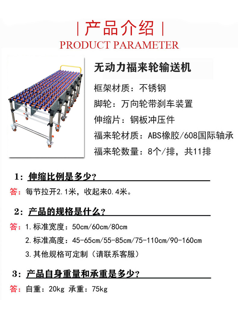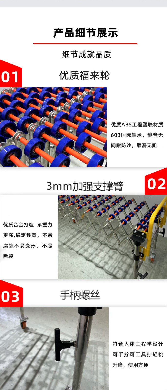 - 通用性強(qiáng):能夠輸送各種形狀的物體,只要物體底部相對(duì)平整,就可以在滾輪上滾動(dòng)輸送,無(wú)論是方形的箱子、圓形的桶還是其他不規(guī)則形狀的物品(在一定范圍內(nèi))。