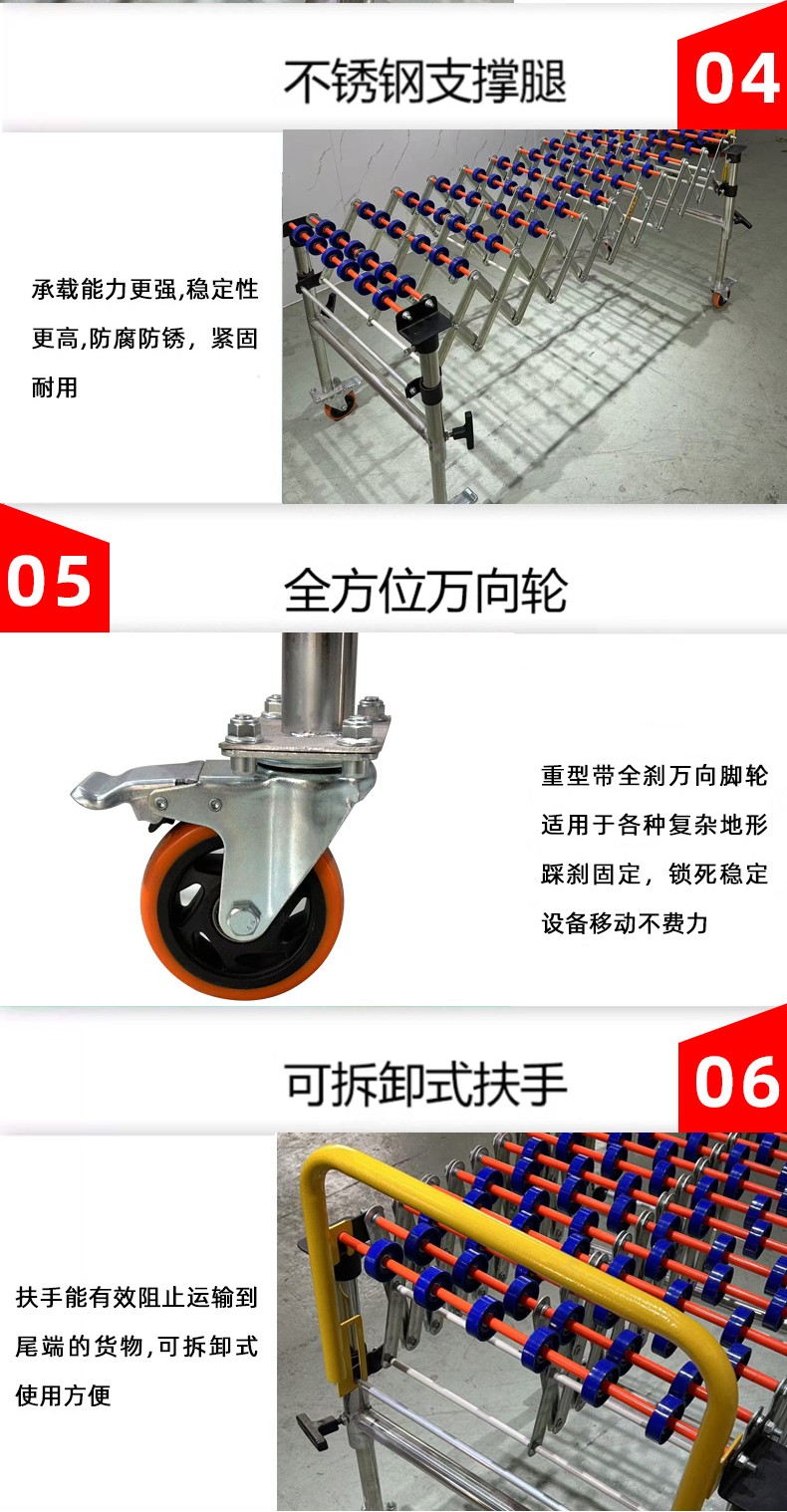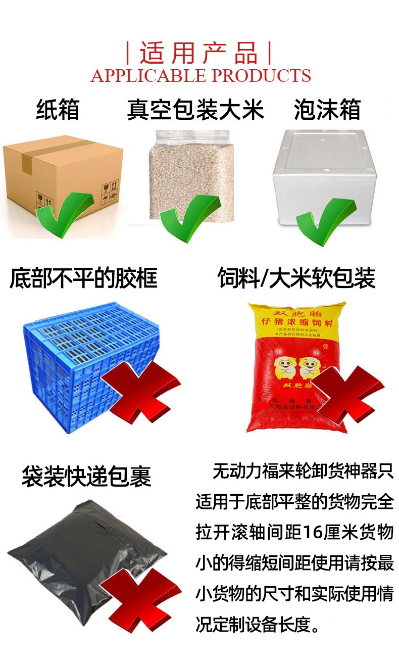 - 不適用于所有貨物:如果貨物底部摩擦力過(guò)小或者表面過(guò)于光滑,在無(wú)動(dòng)力滾輪輸送機(jī)上可能無(wú)法有效滾動(dòng),需要借助外力或者特殊裝置輔助。對(duì)于一些軟質(zhì)、易變形的貨物,滾輪可能會(huì)對(duì)其造成損壞。