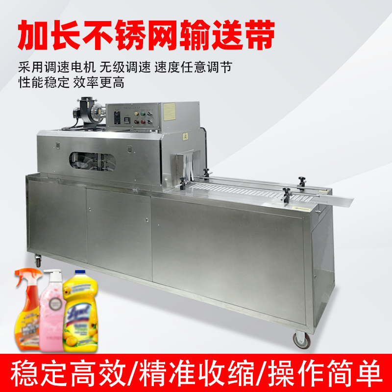 - 前期準備與輸送:先人工或自動化設(shè)備將套好收縮膜(如 PVC、PET 膜)的產(chǎn)品放置在輸送帶上,輸送帶通過無級調(diào)速系統(tǒng)啟動,將產(chǎn)品勻速送入收縮通道。