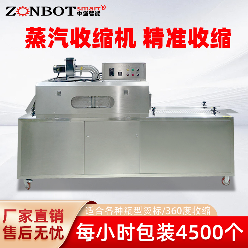 蒸汽的恒溫(通常溫度可控范圍 50-120℃)和擴散均勻性,能避免傳統(tǒng)熱風加熱導(dǎo)致的 “薄膜起皺、局部破裂” 問題,即使是異形產(chǎn)品(如不規(guī)則五金件、弧形瓶身),也能實現(xiàn)平整、無氣泡的收縮效果。 - 生產(chǎn)效率高:適配大規(guī)模量產(chǎn)需求