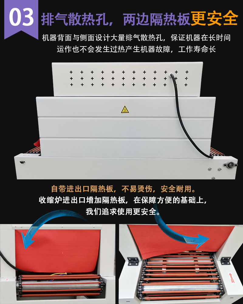 熱收縮機的工作原理很簡單,首先需要將物品放入機器內部,然后調整好收縮溫度、收縮時間和速度等參數(shù),接下來就讓機器自動為你搞定一切吧!經(jīng)過收縮處理的物品不僅外觀更加美觀,而且可以提高物品的耐壓、耐磨性能,延長物品的使用壽命。