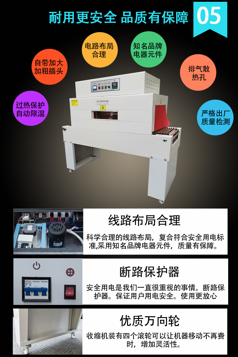熱收縮機的工作原理很簡單,首先需要將物品放入機器內部,然后調整好收縮溫度、收縮時間和速度等參數(shù),接下來就讓機器自動為你搞定一切吧!經(jīng)過收縮處理的物品不僅外觀更加美觀,而且可以提高物品的耐壓、耐磨性能,延長物品的使用壽命。首先,在操作熱收縮機之前,一定要確保機器的電源已經(jīng)插好,并且完好無損。其次,物品放入收縮機內部時,要確保物品表面干凈,沒有油污等雜物,以免影響收縮效果。此外,收縮機的溫度不要調得太高,以免損壞機器。最后,注意收縮過程中不要拉動物品,以免導致物品變形。