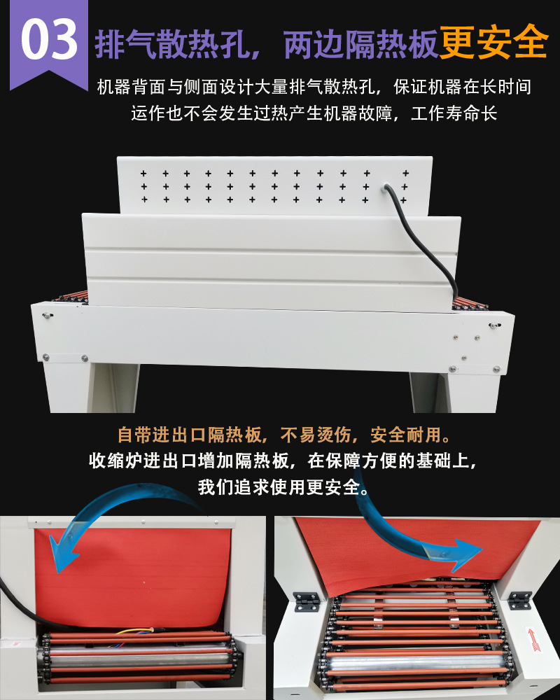 熱收縮機采用的進口材料,保證了產品的質量和性能,使您的產品在收縮包裝后,更耐用、更美觀,更具市場競爭力。