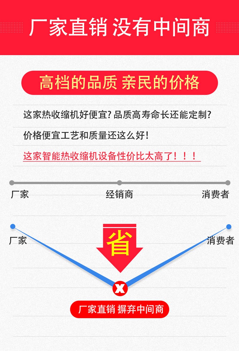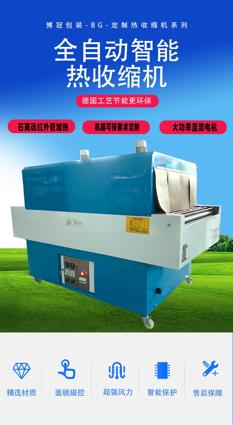 PRODUCT CENTER熱收縮機(jī)除了可以用于包裝物品外,還可以用于其他領(lǐng)域,如醫(yī)療、化工、電子等。隨著科技的不斷進(jìn)步,熱收縮機(jī)也在不斷創(chuàng)新和發(fā)展,未來的熱收縮機(jī)將會(huì)更加智能化、高效化,為我們的生活帶來更多的便利和福利。
