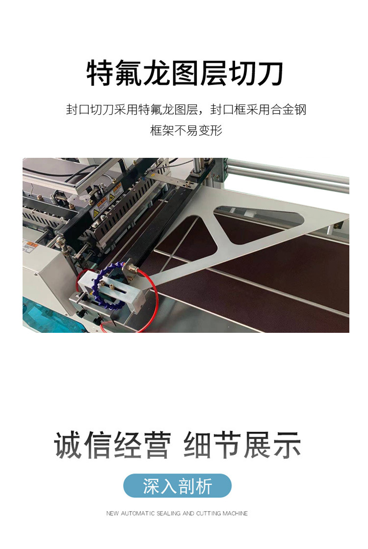 封刀采用美國杜邦特弗龍涂層抗粘耐高溫鋁合金刀,封口不會開裂,不會焦化、不冒煙零污染。