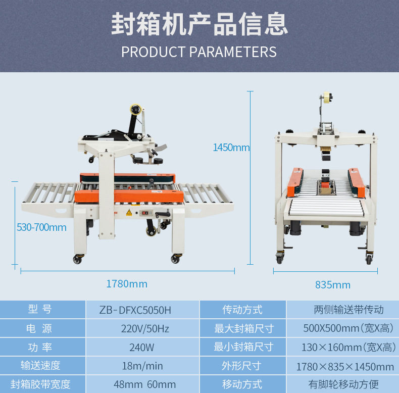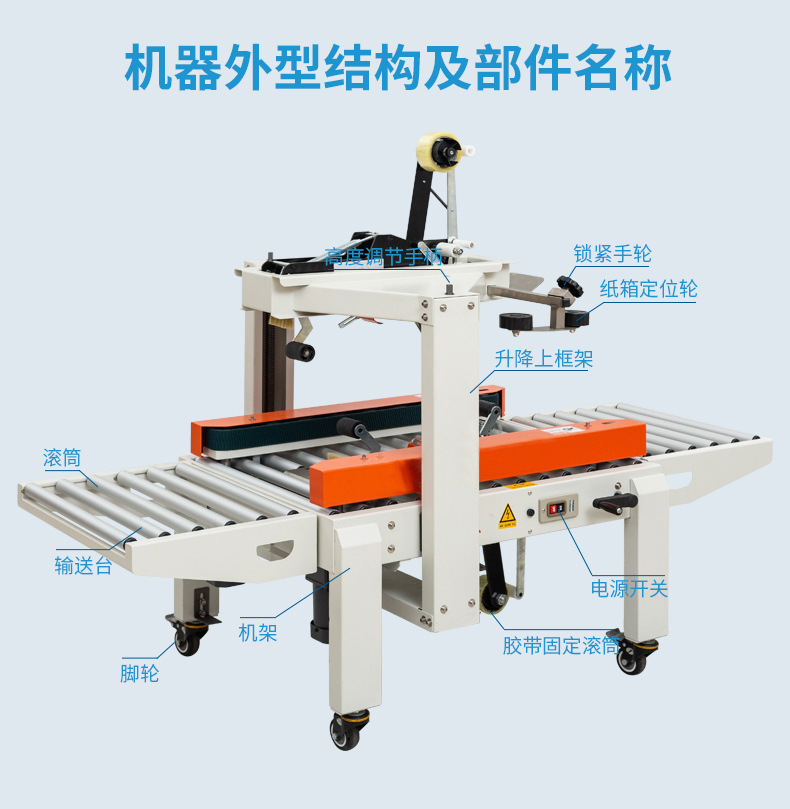 封箱機,也稱為Case sealer machine,主要用于紙箱的封箱包裝。它們不僅適用于單機作業,也可以與流水線配套使用,是包裝流水線作業中不可或缺的設備。封箱機的功能包括自動折疊、粘合和封口紙箱,通過先進的感應和控制技術,能夠自動檢測和調整紙箱尺寸,按照設計要求進行折疊和封口操作,大大提高了包裝的效率和一致性,減少了人工操作的錯誤和勞動強度。