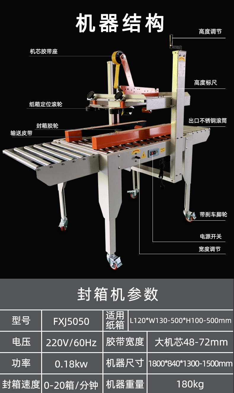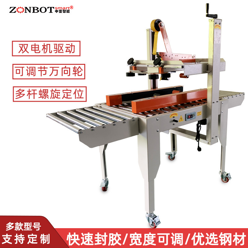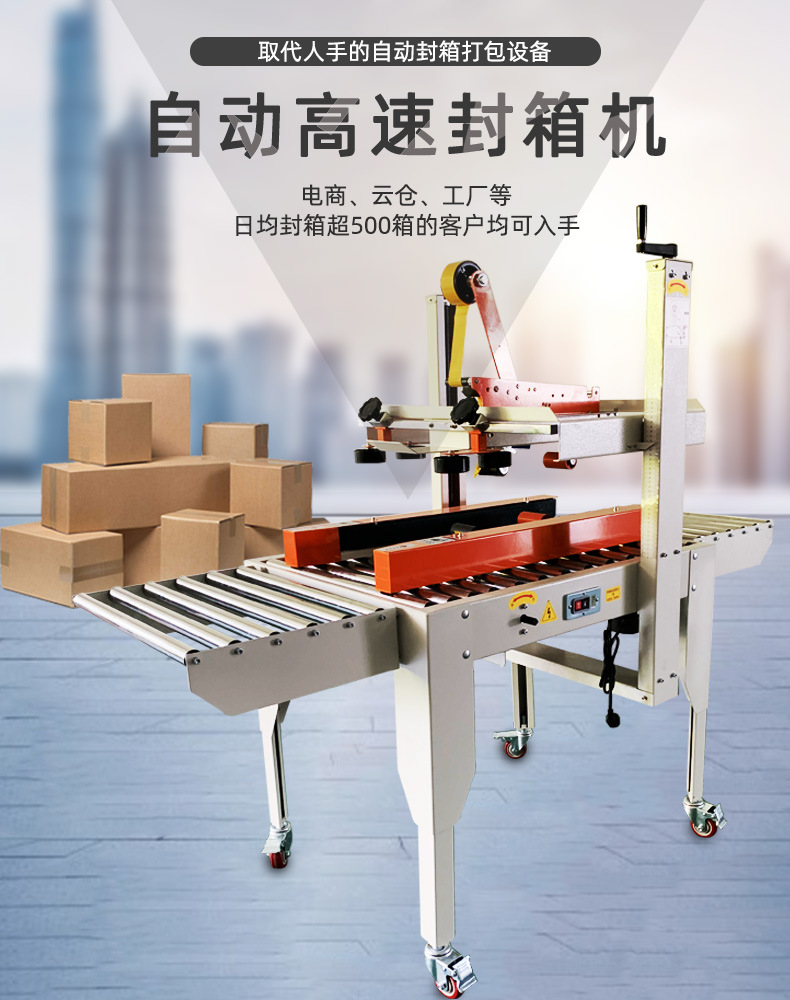 封箱機,也稱為Case sealer machine,主要用于紙箱的封箱包裝。它們不僅適用于單機作業,也可以與流水線配套使用,是包裝流水線作業中不可或缺的設備。封箱機的功能包括自動折疊、粘合和封口紙箱,通過先進的感應和控制技術,能夠自動檢測和調整紙箱尺寸,按照設計要求進行折疊和封口操作,大大提高了包裝的效率和一致性,減少了人工操作的錯誤和勞動強度。